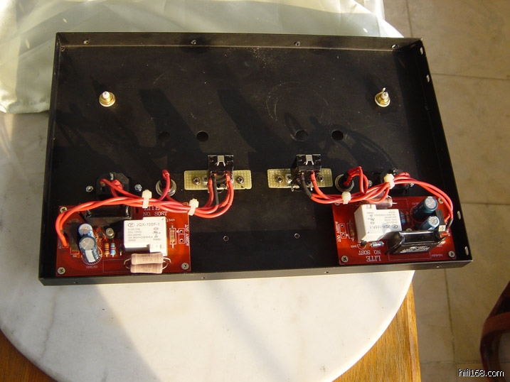 上有两声道完全独立的电源插座、保险丝、开关和软启动板子。名副其实的双单声道耶!