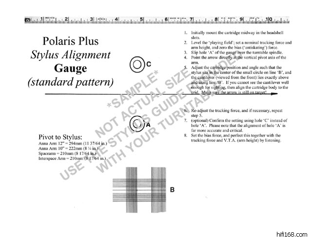 其实调整后效果好坏的问题或重点,就在于老生常谈的超距多少与正切点A、B到底是落在哪里!(因为只有超距与A、B两点正确了,才能得到与唱臂设计思路相一致的、最小的遁迹失真……)可遗憾的是,从国内或香港购入该系统者都无法得到,那一份原应在包装内的安装图解及调整说明书(其实就是两份原厂附赠的A4复印件,一份是装配图、而另一份就是超距设置图)。至于它们去哪了?若说是被那些别有用心,或另有所图者调了包,也许过分了些!也得罪人…… 但,千真万确的却是:为什么我的那台(套)就会有这些图纸呢?难道这会是上天对说真话、办实事者的某种怜悯或回报吗?