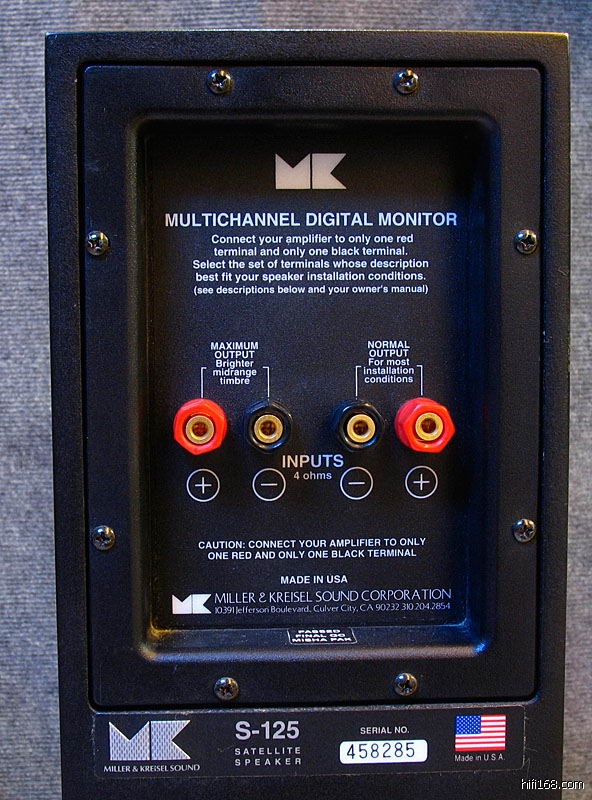 有两组接线柱,一组声音较明亮、快速,另一组较柔和,可以搭配不同的前端器材与听音取向。