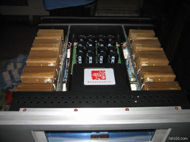 本机采用了强大的电源设计,这既是优秀性能的需要,也是甲类工作状态的需要。前级采用甲类并联电源,用8万微法电容器滤波,作为提高清晰度和音质的甜美度的保证。后级则用16万微法电容器滤波,以保证强大的功率储备和提高低音的雄厚度。