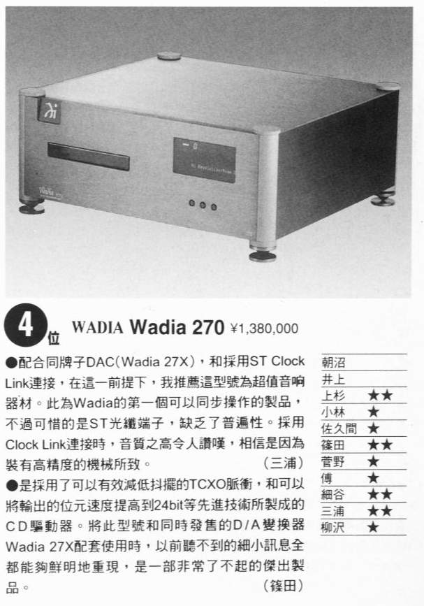 过去在网上都听到批评Wadia 过于直白,我试听这一套西装(Wadia 20转盘、Wadia27XI解码)没有这种感觉,由于瞎瞎的德国卡普拉线皇超级平衡前线至后级专用线材起到了推波促浪的作用,只看见高贵的丝绸般的光泽。