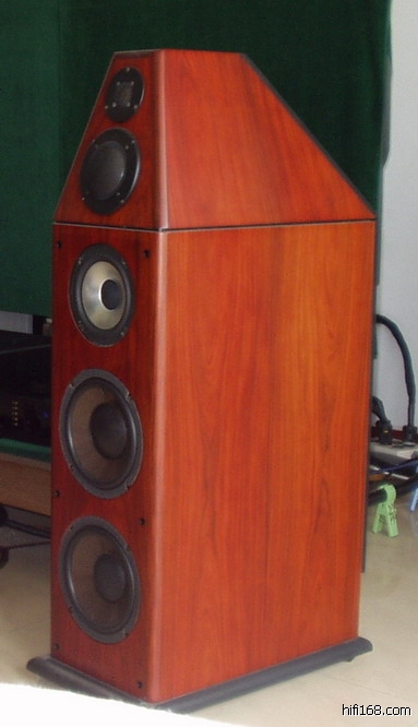 美国的“GENESIS(珍尼西斯)Ⅴ号”。一个箱前后共有八个喇叭单元(2个高频、2个中频、4个低频),为了伺候好二个箱八个8.5吋的低音喇叭(其极低频可沉到16Hz),珍尼Ⅴ自带有一个电子分音的低频伺服扩大器(4Ω每边400W),频率衔接段在85Hz。珍尼西斯Ⅴ号的喇叭单元安排非常特殊,一个音箱的喇叭单元,正面五个背后三个。正面上端有一个扁带式圆形高音单元与一个3吋钛振膜半球形中音单元,背面上端另有一个相同的高音单元。这二个高音单元是反相双面发声的(Dipole),加上正面的中音单元箱室是透到背后的,因此也形成反相的向后中音背波。下端的箱体上正面有一个6.5吋铝合金锥盆中音单元以及二个Kevlar三明治结构辅以石墨材料射出成形的8.5吋音盆的低音单元,背面也有二个相同的低音单元。正面、背面那二组低音单元的发声则是采取同相双面发声(Bipole)的。如此就形成反相双面发声与同相双面发声的混合体。珍尼Ⅴ为四路分音,每路分音都是以一个八度频率24dB的大斜率衰减。因此就有一个构造复杂用料高级的分音器,而这个分音器就附在那个伺服扩大器里。美国TAS的主编HP将珍尼西斯Ⅴ号列为五颗星产品。