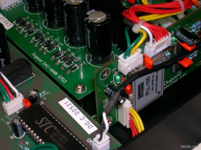 作为一部入门级唱机,“新世纪”给了我们太多可供玩味的地方,那么它的内部技术又是如何呢?应当说它的解码器性能是相当优秀的,音频DAC上采用具有120dB的动态范围,24Bit/192KHzAK4394芯片,在音频输出上度高采用了由自己研制开发的OP6805纯甲类运放模块,由于“新世纪”采用了分体结构设计,所以在数字解调上它以AK4112作为SPDIF的数字解调,后面配合同步整形和度高开发的PLL100第二级锁相环模块,除此之外,我们还发现“新世纪”作为一部入门级唱机在变压器的采用上甚至是以两个经过屏蔽的EI型变压器来分别为转盘和解码器部分分别独立供电,这样也就可以杜绝很多不必要的信号干扰。这样的设计出现在一部入门级唱机上的确是很少见,由此我们也可看出度高对于声音表现的重视。