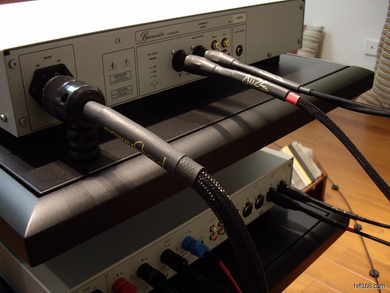 换下Au24 XLR,换上Burmester Silver XLR,这条线是我至今所接触的所有柏林线材中最欣赏的一条,由其连接柏林线材可以说天衣无缝,他既具有柏林标志性的柔顺光泽的高频,中频也异常饱满纯净。从其结构上分析不无道理,其实他并非纯银线,而是由多股细银线与铜线组成的李兹结构,其中银线占的比例较大罢了,如果有这样结构的喇叭线那该是多完美啊。