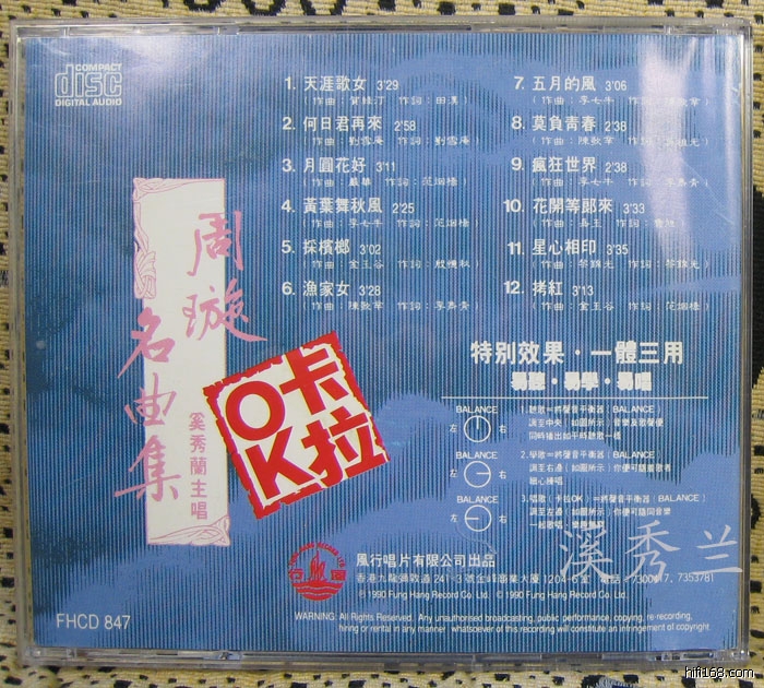 《奚秀兰主唱 周璇名曲集》卡拉OK唱片。风行唱片有限公司出品,1990年,编号:FHCD 847