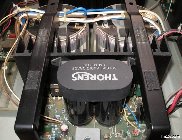 我打开看到内部的第一感就是简洁没太多的组件,可能就是欧洲人的风格吧!再看后级;两只牛供两个声度、每边还有2支15000v濾波电容和6只功率管,可算简洁中带点强壮感!