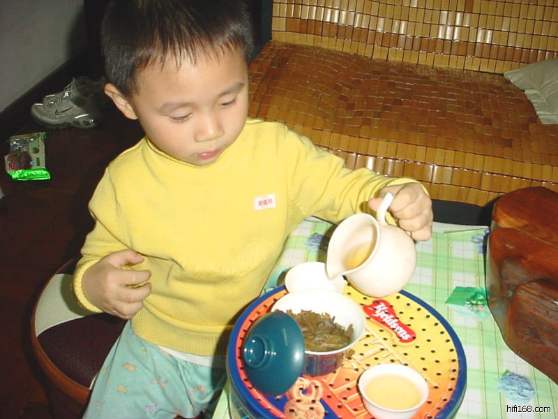 哈哈,潮汕人吧,这么小就会泡功夫茶,还像模像样的。;P