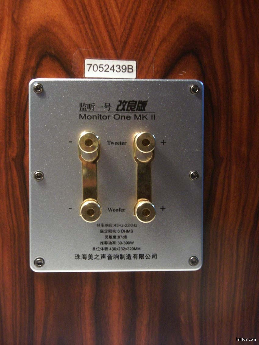 闻名遐迩的音箱是美之声的正规产品,我直接打电话到厂家询问情况,我得到了这样的回答:“是的,我们是最后生产了一批这样的产品,因为已经没有铝合金的那个盒子了,所以把分频器装在了箱子顶部,应该不会影响整体的声音的;如果你觉得不满意,我们可以找一下还有没有那个盒子,有的话给你寄一对,你把现在箱体里的分频器给我们寄回来就行了!”说完,让我留下了电话。