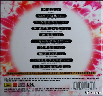 年前到音像城精选买了五六张唱片,想过年欣赏,可听了一遍下来发现只有这一张唱片能入耳,发上来给大家看看。这张唱片在2月16日广州日报一周影音销售榜发烧唱片中排第三名。这是一张纯音乐唱片。《草原音乐素描 炫色》集中了中国草原音乐中最优美最具代表性的旋律,采用新世纪音乐的配器手法编配,使之成为了给人无限美好想象空间的中国新世纪音乐唱片。整张唱片旋律优美、风格多样、音效震撼、气势辉宏,令人荡气回肠,唱片中十几种中西乐器的音色和质感都很真实,所传达的意境也非常优美深远,可听性和试音效果都很好,是一张集欣赏、试音、收藏为一体的发烧唱片。特别是唱片中的第二首嘎达梅林很有创意;用打击乐和人声给马头琴伴奏,音效震撼、气势辉宏,令人荡气回肠。
