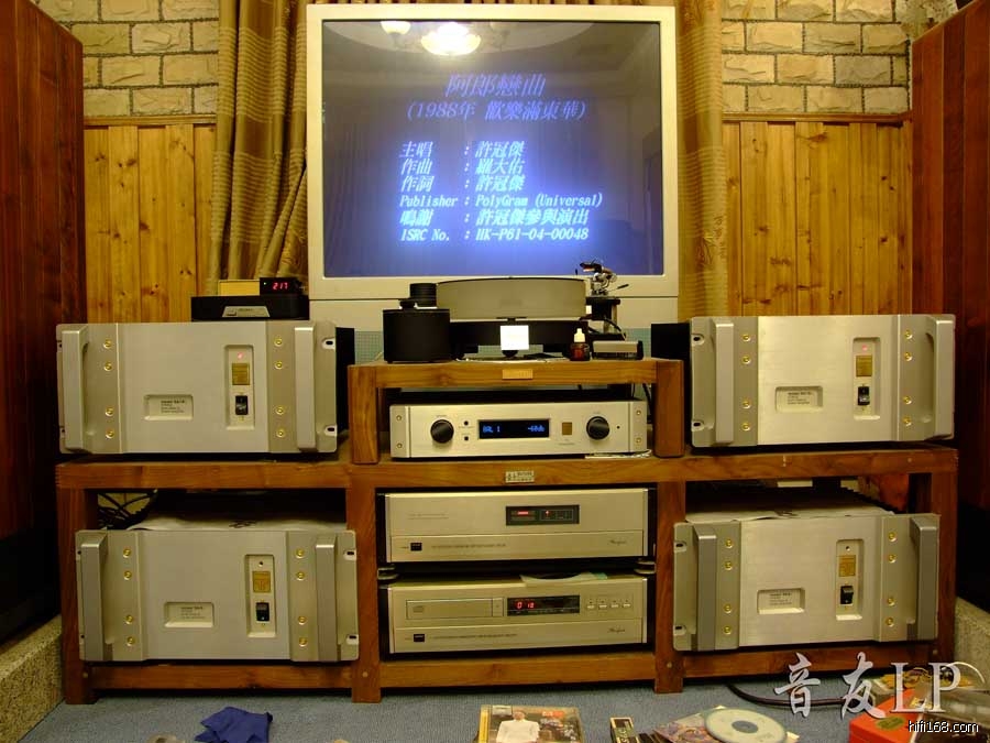 音箱有:卓丽小山;功放是:美国精神T2前级、一台美国精神6e分体后级,一边声道甲类125w、另一台美国精神10e分体后级,一边声道甲类175w;双后级来推卓丽小山.CD机是:金嗓子80、81分体CD机.这套系统我感觉推力实足,这两台后级是大电流后级,一边声道开机瞬间电流达到18安过20秒衡定在5安.推卓丽小山很出色,平衡感好,音色也很好,是对较全面的音箱.