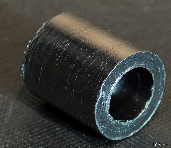 要特别交待一下的就是石板下支着的脚钉。这脚钉的组成材料是:石墨、金属、橡胶和空气。怎么还有空气呢?——因为空气会震动同时也可以阻绝震动。成品可利用石墨材料的寻找颇为费力,我也是在走遍大街小巷后才找到如图的构件。石墨的力学强度很差,是经不起重压的,因此要给它补强加筋,我选择了螺栓。在螺栓和石墨桶之间我还放置了橡胶组件用于连接与缓冲。至于效果如何我还是那句话——仁者见仁智者见智。我周围不少朋友听后都感觉对高频的改变很大,而且有不少人陆续用上了这些“憨厚不可爱”的小家伙!