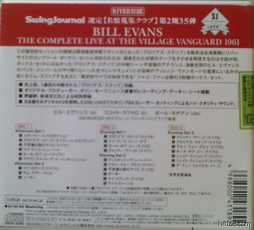 这套Complete Live at the Village Vanguard共有三张cd,包括了上述两张专辑的全部内容和其他未发表作品。