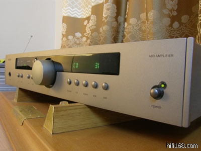 论体积,A80这次测试的产品中最小之一,这也是传统英国产品的风格,他们不用去争老大。设计的理念就是只要能提供美妙的音乐和耐用;的可靠性,其它曰切显得并不重要。A80的面板设计是现今Arcam的主流风格,带有弧线的设计显得简约而有现代感,而位于面板右下角的电源开关和指示灯的巧妙组合令人一看就知道这是ArCam的产品。面板上除了中置式的音量控制是旋钮式操控外。其余功能均使用按键式设计,目的是为了在应用遥控设计时获得更好的信号切换接触性能。因比A80的信源选择是采用继电器切换的,能最大程度降低信号传输的路径长度。A80使用了显示屏显示工作状态。也是近年Arcam所追求的更人性化操作界面的结晶。