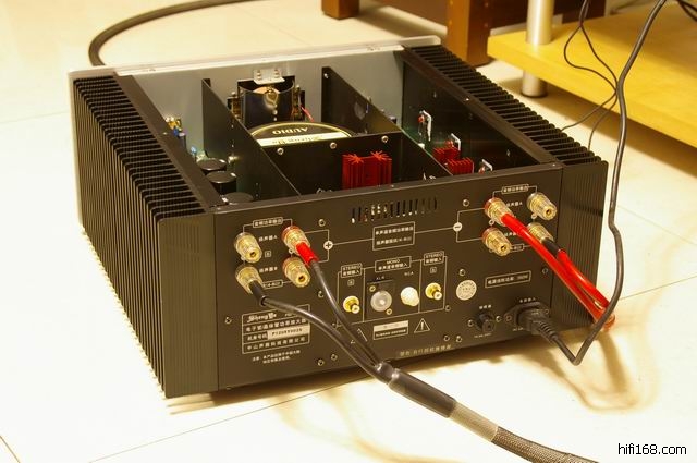6.电源部分由 450W 环型变压器和 8万微法电解电容以及25A 整流桥堆组成,为低阻抗负载时提供强大的能量储备; 两侧巨大外露散热器提供良好散热效果, 使机器运行可靠耐用。