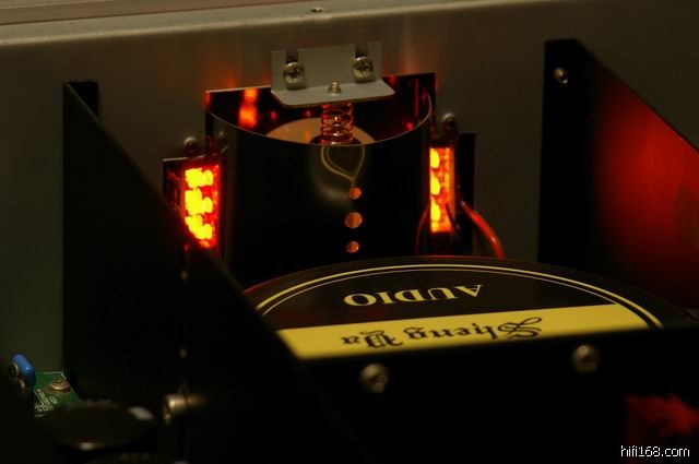 发烧级电子管 6922 担任,并由 6N6 低内阻管组成线性极佳的 SRPP 电路驱动晶体管电流放大器;由于电压放大器完全由电子管担任, 晶体管只是将电子管输出的小电流变为大电流输出, 所以其后级音色与电子管功放音色极为接近, 得到完美的音色表现。