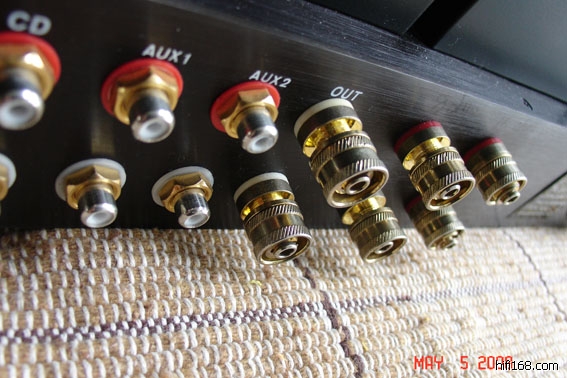 打开背板用料会把您惊吓到,英国JENSEN极品银膜电容四只及铜膜铝膜电容遍布全身,硕大的美国DALE钛合金军用抗高温极品电容(天价级的胆机上都不多见用)机上几乎布满各类DALE高档型号,以达到校声最高境界,黑金钢电容;阿帕斯电位器;喇叭接线柱和RCA信号端子高档用料都让人惊呆,就连保险丝都不放过,用的是进口最高档的银丝缠绕保险丝!