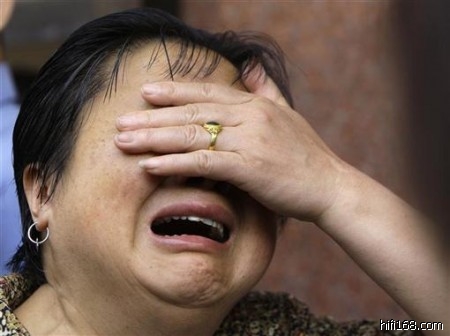 5月16日,绵阳临时救助中心外,因为没能在安置人员名单上找到女儿的名字,一名妇女伤心痛哭。(2008/5/23 23:27:55 上传)