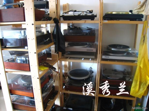 陈先生这里大多是东瀛出的直驱盘。用力士C05前级带唱放、力士N05后级,雅佳古董音箱。在这儿听了一耳朵LP,用舒尔97唱头,声音质朴、自然,全频段平衡,中低频的表现中规中矩,很有LP味,低频的冲击力不错,听爵士乐过瘾。