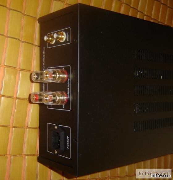 6P1的存量大,价格不高,但胆味浓郁.这款机器设计采用6J1三极管接法推动6P1,6P1的接法采用标准束射接法,固定栅负压.不过该放大板的玩法很多,可通过跳线跳为三极管接法,6P1的负压也可通过跳线跳为自给栅负压,板子采用玻纤板,双面步线,质量相当好,布局合理,交流灯丝点火,但整机左右声道噪声均小于10mV,这很大程度上依靠线路布局. 机器上均采用正品发烧元件,镀金输入输出端子,采用全新的军级6J1两只,6P1两只. 电源是75W优质变压器,晶体管整流,输出为高质量Z11铁心输出变压器,3夹2绕法,变压器都带屏蔽. 机器外壳很漂亮,拉丝铝面板. 机器共有5台,声音非常柔美细腻,无任何噪声,机器的低频和高频很均衡,解析力非常高,适合推灵敏度89DB及以上箱,机器输出阻抗4,8欧姆. 机器采用内置封装的,测试听了10天,机壳不可覆盖,但温度不会过高,测试温度夏天约65度,很安全的设计. 机器的线路板可正反面装元件,非常坚固,所以如果有兄弟想要把管子露出来装(自己买壳),也非常方便,可以说设计非常科学.电源板,音量板可单独拆开装,方便你的布局. 不含机壳和接插件,配齐管子+牛+PCB+电阻+电容 也就是除了壳接电就响的320元/套,,如果对声音不满意,一周可免费退货.要的可消息联系我,最近两天上淘宝地址. 重新上图,实物非常漂亮.只是市场价格的约一半,非常实惠,机不可失.地板上的地板价,好机器莫错过。淘宝地址:http://auction1.taobao.com/auction/item_detail-0db1-73dd4798ab24adf993e17d15e6a25d5d.jhtml