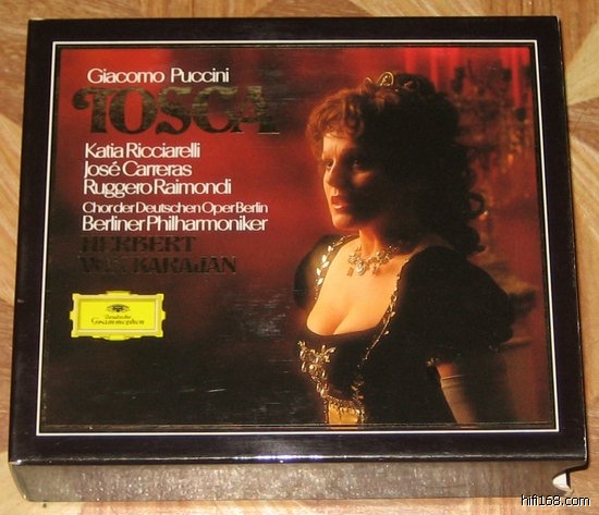 提到《托斯卡》无论如何是躲不过卡拉斯的,卡拉斯三次录制过这部歌剧,1953年由意大利歌剧大师萨巴塔指挥米兰斯卡拉歌剧院乐团和合唱团演出的录音评价最高,我还从未看到过对这个版本的非议。卡拉斯当时正值巅峰时期,其与众不同的对声乐的认识和塑造角色的能力在此都表现的淋漓尽致,虽然其演唱远非完美,但表现力超强,可谓丝丝入扣。在第二幕中,卡拉斯把《为艺术、为爱情》从一首孤立的炫技歌曲变成为整个歌剧的一个不可分割的组成部分,集中体现了托斯卡的灵魂、精神和肉体此刻正在发生的一切。而在第三幕中,作为有史以来最伟大的托斯卡扮演者的卡拉斯在她发现卡瓦拉多西已死去时发出的呼喊,堪称绝唱,至今为人们津津乐道。而戈比塑造的警察局长斯卡皮亚也是令人叹为观止的,那种“肉欲”和“爱情”的层层叠加,多重人格的刻画都是别人不可企及的。相比而言,斯苔方诺的表现虽然充满了爆发的激情,很有感染力,但似乎被卡拉斯和戈比盖住了。作为意大利四大歌剧指挥之一的萨巴塔,和塞拉芬的侧重抒情不同,他更擅长处理戏剧性的场面,其发力又准又很,经常会把听者置于热血沸腾的境地。纵观全剧,其魅力之所在,恐怕非仔细聆听不能领略其中的奥妙,可惜1953年的单声道录音难以令人满意,但这个经典版本还是必须的。