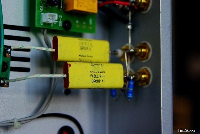 S200L前级采用全手工搭棚结构,部分阻容元件为台湾合资厂定制,主滤波采用日本原厂进口红宝石音响专用电容(非国内贴牌生产的普通型号),耦合电容采用