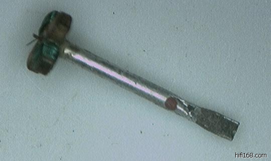 拆下伤痕累累的线圈与针,圈全断,只好2 组重绕。对针杆校正后,因内部来重氧化开裂,居然稍受振动即一块块裂开掉下来。