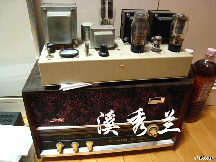 李先生收藏了一些古董。古董收音机,其上是李先生DIY的6L6电子管单端胆机,驱动功率3瓦特。