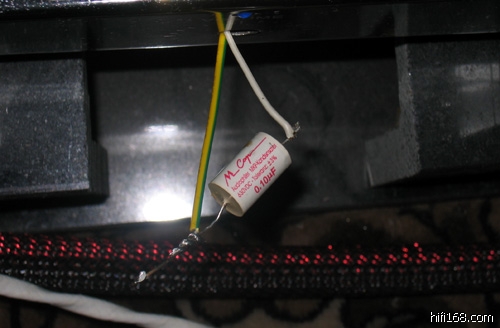 第一个上场的是原机的偶合电容,白底红字,虽然也是Mcap的制品,但毕竟是最廉价的一款锡铂规格,听感上相对另外2款而言,音色毛刺,特别是人声的齿音很重,中高音相对很瘦,干,泛音少,质感尚可,音场略窄。高频在播放小提琴时显得紧张,尖锐,不耐听,中频很毛糙,低频透明度不错,但密度感不佳,基本立刻就枪毙了,毕竟才20元一个。
