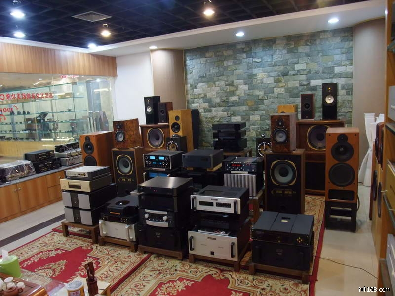 店中使用的前级和唱放都是MENN的产品,唱盘是先锋的皮带盘加德国的Souther直线臂加高度风1K多的MC唱头,这么便宜的唱头出来这么有质素的效果实在让我大感意外。仔细研究下发现这个先锋的唱盘的木质底座和那几个铝合金高脚原来专门定做的,最特别的是安放唱盘的几个轻质水泥砖块,据说是MENN在附近工地上拿一包香烟从民工的手里换回来的,现在那些民工碰到MENN都会问他:“还要不要砖头啊?”