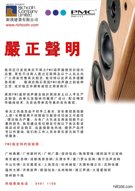 英国pmc音箱中国区代理声明 cantor顶应