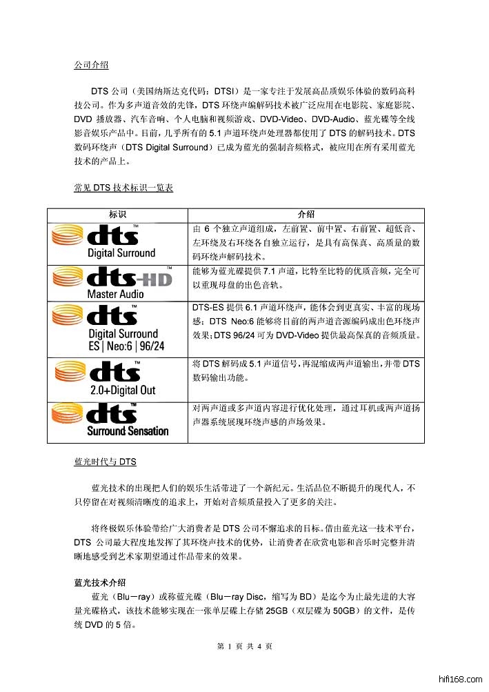 碟片及环绕声音乐软件等全线影音娱乐产品。DTS 成立于1993 年,总部设在美国加利福尼亚州