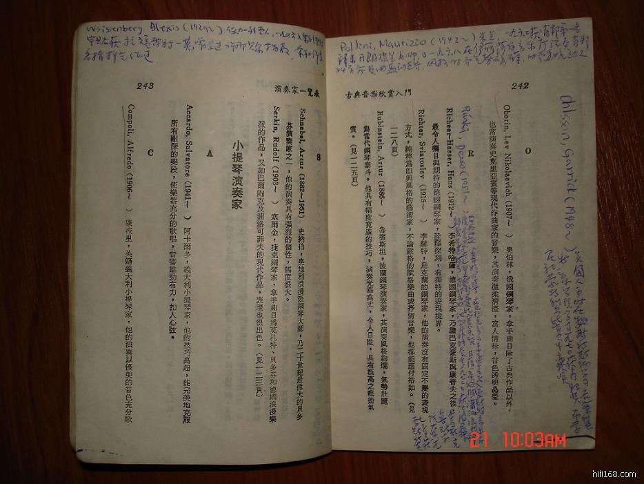 大演奏家、大歌唱家、大指挥家,让我长了见识。书中未收录的年轻名家我用圆珠笔抄在上面。