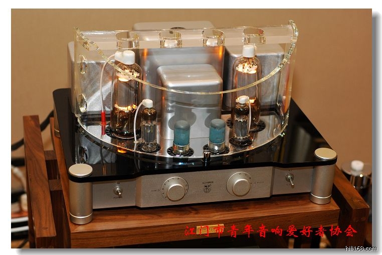 金大侠介绍他的ALI-8805合并式电子管功放,输出“电子管”选用了久经考验的“一柱擎天”805(FU-5),这是一只建国以来在广播系统普遍采用的一只音频放大专用管,其产品的技术性、完整性及可靠性,远胜于845、211,每声道在技术标内,能从容的输出50W以上的额定功率。