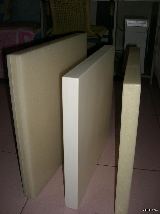 原帖由 咖啡和糖 于 2009-8-10 1:05:00 发表我突发奇想。人造石是采用高分之树脂加适量天然矿物质聚合而成。密度高柔韧性,我用了上下两层中间夹一层橱柜用1.8CM厚高质量刨花板。这样又可防止日久变形,还可中和一下人造石本身稍硬的特点。看看我刚制作的器材垫板: