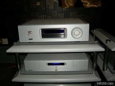 活动。看能否找到自己心宜的CD音源。朋友所带的CD机是英国之宝的G08。2和日本ESOTERIC的X05的SACD机,而同场PK的有美国WADIA的新款381CD机、德国柏林之声的052CD机、美国Ayre的C-5xeMP新款的SACD机,是次PK的功放是来自美国的AUDIO RESEARCH和意大利SONUS FABER的新款大名琴,线材有VDH和AQ等,先上些图片养养眼,及后再上听后感给大家分享一下。