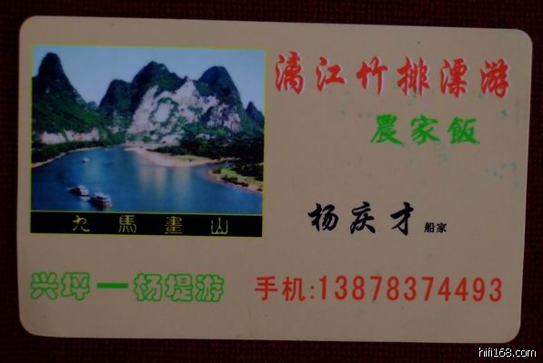 接了好几个电话 和许多的短信 咨询到桂林如何拍摄 线路怎么走. . . . . . 有几位到了桂林 龙脊还保持着电话的咨询 下面给大家拍摄漓江时 介绍一位跟俺交往了十几年 憨厚老实 值得信赖的朋友给大家 他老人家叫:杨庆才 家里种有一点儿薄地 主要靠打鱼为生 后来**不让在漓江打鱼 就做了个小竹排靠达载游客度日 他熟悉漓江上的任何山头.景点的拍摄时间 地点. 他可以给大家当向导 演员 道具等 收费低得你自己都过意不去 俺下面里的主人公就是他.联系电话13878374493.