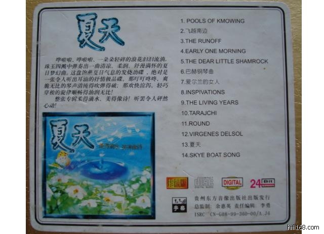这张贵州东方音像出版社大约98年出的《夏天》,虽然是个拼盘不入流的东西,但其中的音乐实为炎热夏天中的一道清凉甘泉。手上这张已经快要报废,想再找一张新的,无奈搜遍网络一无所获。其中第三轨来自《洛基山脉》开篇第一曲,没听过的听一下,夏天流水声非常舒服。