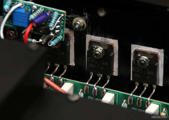 203MK每声道共使用了8组三肯C3519A/A1386A功率管,总数达到32只,这样既保证了充足的力量,又保证了声音的细腻。不过在A类的工作状态下,热量非常厉害,用家一定要留有充足的散热空间。