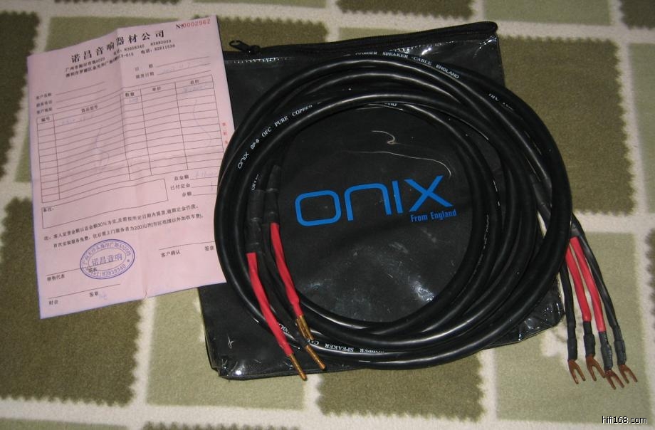 在广州诺昌购买, 原装英国欧尼士 ONIX SP- 6喇叭线 原两边是香蕉头, 现另一端在香蕉头上加了CMC 紫铜Y插头 线长3米