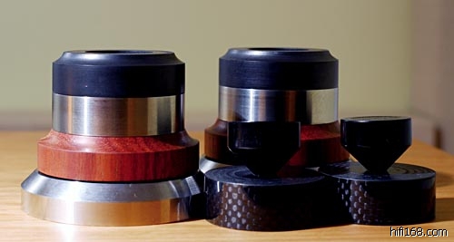 CSP415的出色表现不禁让我产生了让它和海阳的旗舰12脚钉作一比较的念头。因为海阳的旗舰12脚钉是我目前听到过最好的国产脚钉之一。不过,就目前的试听结果而言CSP415绝对够的上这个级别。好在我手中有套海阳的旗舰12脚钉,不过之前就已经将它顶部和底部黏着的橡胶垫与软木垫取掉了。按照海阳的解释,这两种材质是用来调音的,但在我的系统中我选择了去除它们的做法。配合Z&X CSP415垫块共同使用的是CSP251避震钉,这样以便发挥出自家的特点和长处。测试的位置这次选择了JEFFROWLAND CAPRI前级下面。