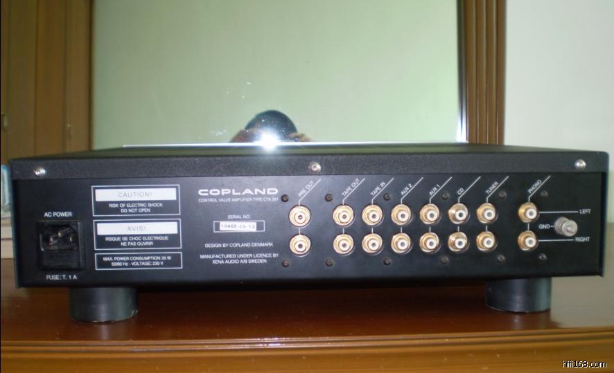 Copland CTA301 MkⅡ真空管前級,使用四支12AX7真空管(RIAA放大),二支6922(高電平放大),輸出與輸入反相設計。售價:78,000元,代理:鈦孚(02-27466015)