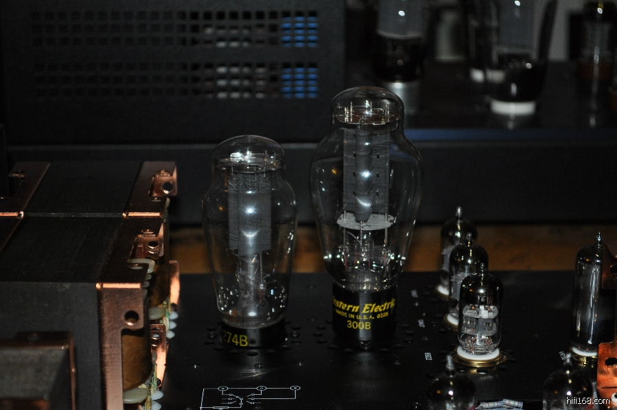 最为有趣的是在SN3008前级上比较数款整流管,包括跟机的曙光5Z4P,曙光T字特别版5Z3PA,大盾铁座GZ34,喜万年274B,军用喜万年VT-245,以及西电274B。经过比较,西电274B以全面的表现(解析力,层次感,动态,细致委婉的情感表达等)蟾宫折桂,紧随其后的是喜万年274B,虽然中高的细腻飘逸,清晰度,弹跳,和整体的音乐气质如果WE274B,但其他方面的表现非常接近WE274B,实为不可多得的一款好胆。而让人比较失望的是大盾铁座GZ34,其表现绵软无力,朦胧缓慢,声音比较木纳机械,完全体现不出英国极品整流管的风采。也许是我目前的系统搭配无法将铁座GZ34的优点发挥出来。