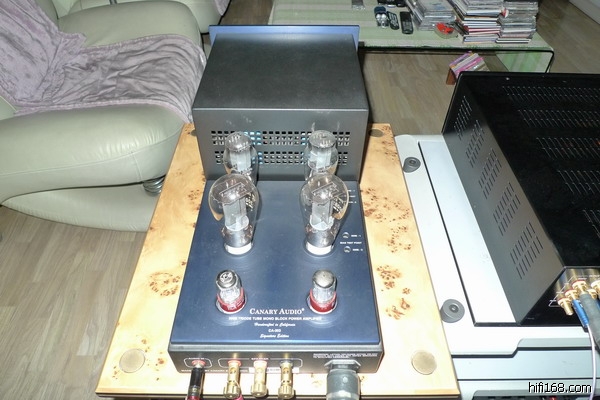 这样原来的HERRON和MARK23.5的胆石搭配听了一段时间。23。5有着不错的驱动力和精细的细节刻画能力,只是相对清淡理智的风格和我所追求的声音有着较大的差距,因为我的心里还是念念不忘300B的美声。经过一番考察和比较,最后从临近城市的老烧手中接了对成色和状态良好的300B推挽双单后级-CANARY金丝雀CA303SE。金丝雀这个美国品牌比较低调,303SE是他家的老旗舰,设计的许多方面,特别电源和输出牛的绕制借鉴了西电名器WE86A,定价比较克制,以价论声,有着很高的性价比。输入放大级每边采用一对6SN7,一对5AR4推动一对300B做推挽工作,提供24瓦的纯甲输出功率。上家非常大度,除了全套跟机管,还以比较廉宜的价格将自用的古董管一起出给了我,其中包括两对RCA5692,两对大盾CV378(GZ37整流管)以及两对07版的复刻西电300B。