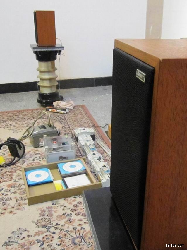 独特的LS3/5A的脚架,主人家雷生在电力部门工作,是LS3/5A的忠诚粉丝,为给这对LS3/5A配个好脚架可是挖空心思。终慧眼独到,利用工作之便将退役的高压电铁塔的避雷陶瓷鼓拿来给LS3/5A垫脚。这一个就百多斤的铸铁陶瓷复合物,真的敌过其他脚架。不信?到雷生家听过他的黑牌LS3/5A就知道!