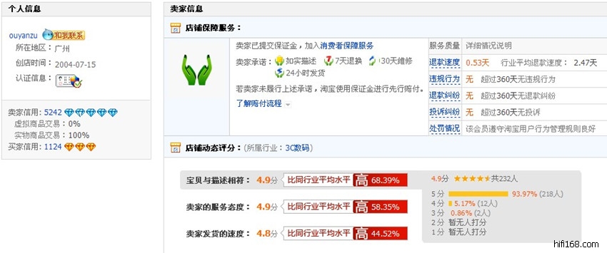 2003年9月份注册的老店铺,至今已经是第8个年头。
