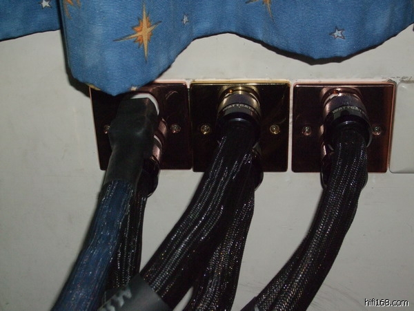 说明一下,原来的MK墙插是单插的,后级占了一个,另外两个分别接出两个四位插座,一个给转盘、电视和唱放用,一个给前级、解码、LP唱盘和DVD机用。后来改用古河加禾宝,都是双插的,转盘、解码、前级、后级、唱放都是直插,再接一个四位插座给LP唱盘、DVD机和电视机共用。这样一来,电源上就干净多了。