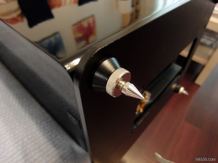 最让我喜欢的设计是2050的底座和脚钉。2050用的是一块喷上黑色亚光漆的金属底板,四个全金属的脚钉相对箱体来说很粗壮,非常结实好用,而且可以从底板的上面用内六角扳手调整四个脚钉的高度,调整起来方便很多。这样的底座和脚钉设计比我现在所用的ELAC FS210 CE的木质底座和塑料/金属混合脚钉明显要好,更加坚固稳重,而且批量生产的话并不会增加多少成本。这一点很值得其他厂家学习!