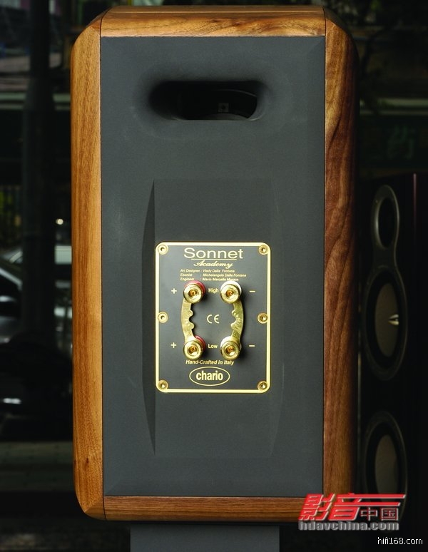 意大利出产的高级家具一向都是世界闻名的,所以生产出来的音箱同样有着高级家具的影子。Sonnet音箱的箱体同样采用实木打造而成,只要你亲手触摸过它之后就会体验到那种真实材料的价值感以及精美的加工工艺。而且箱体的底部、顶部和边角部分还设计成圆弧形,令整体的观感更舒适,更有线条美。而箱体的内部则使用了高密度的MDF板作支撑以加强箱体强度。此外,大家还会发现Sonnet的箱体设计有别于一般的音箱,它的箱体表面均刻上多条坑槽,究竟这样的做法意欲为何?其实,这是为了避免热胀冷缩而对箱体材质构成影响而设的。而且,厂方还为Sonnet度身订做了一只工艺同样精美的金属脚架,并可将音箱固定在脚架之上,令音箱的摆放更加稳固。不过,这只脚架是与Sonnet分开销售的。但是,我还是强烈建议Sonnet的玩家们使用为好,以发挥音箱的最好效果。