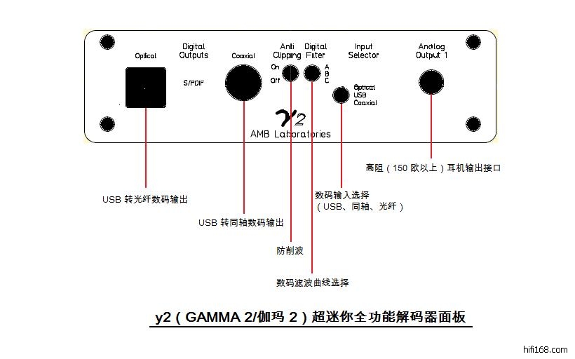 y2 是等如加建版的全功能 y1,y1 原有功能全在,另增加由 AD1896、WM8741 及 AD8656构成的加建部份组成 24/96 升频、USB 转同轴/光纤数码输出、低阻耳机输出及 RCA 输出。