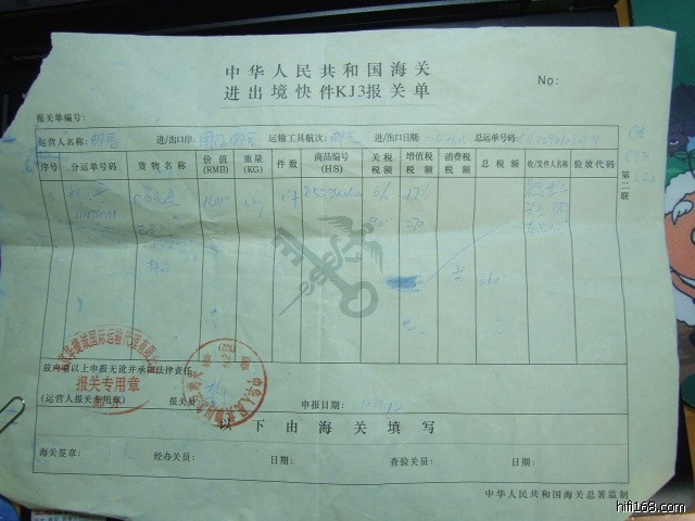 海关的纸条我现在没了,但里面记载的内容应该是这样的: